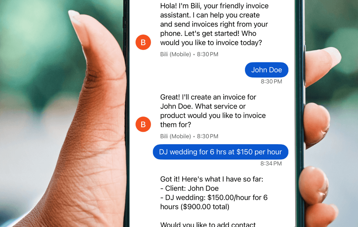 Easy sign up for 3 free invoices; text (254) 500‑BILI (or 2454)